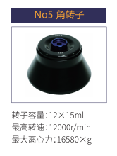 No5 | 角轉(zhuǎn)子 | 12x15ml | 12000r/min | 16580xg |