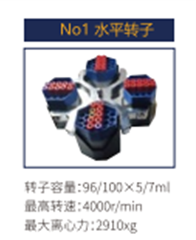 No1 | 水平轉(zhuǎn)子 | 96/100X5/7ml | 4000r/min | 2910xg |